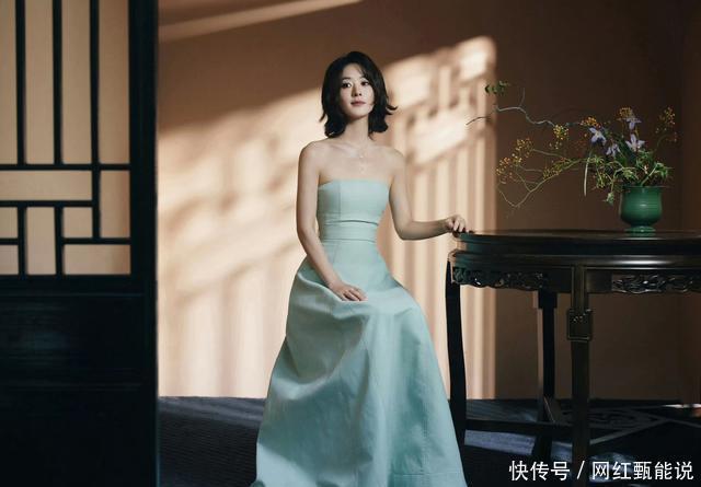 赵丽颖薄荷绿抹胸裙 赵丽颖直播,薄荷绿抹胸裙好美!淡淡的,好清新~